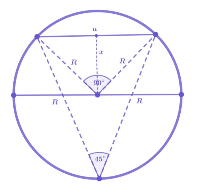 Rozpatrywana cięciwa a jest przeciwprostokątną w trójkącie prostokątnym równoramiennym, zatem: