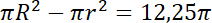 Na koniec skorzystaj z tego, że znasz różnicę obu kół i pole każdego z nich można obliczyć ze wzoru