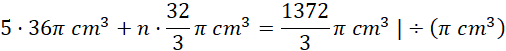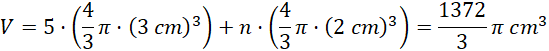 Zapisz ją jako sumę objętości kulek o promieniu 3 cm i 2 cm. Z otrzymanej równości wyznacz n.