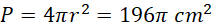 Oznacz promień podanej dużej kuli jako r. Jej pole zapisz jako: