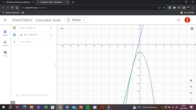 Rozwiąż układ równań i następnie narysuj obie funkcje w jednym układzie współrzędnych.