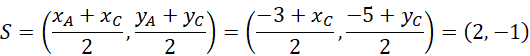 Wyznacz współrzędne punktów C i D, wiedząc, że skoro P jest środkiem przekątnych AC i BD, to jego współrzędne określa wzór