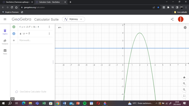Rozwiąż układ równań i następnie narysuj obie funkcje w jednym układzie współrzędnych.