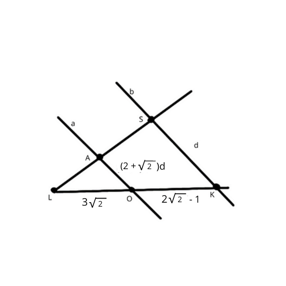 Narysuj rysunek i opisz go zgodnie z treścią podpunktu. Zauważmy, że odcinki |OA| i |KS| są podane w proporcji, co oznacza, że ich długości mają się jak