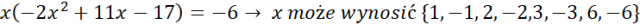 | -2 | 11 | -17 | 6 | |