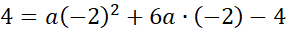 W tym zadaniu znajdź wartości współczynników a i b w równaniu funkcji kwadratowej y = ax2 + bx - 4, której wykres przechodzi przez punkt A = (-2, 4), a jego osią symetrii jest prosta x = -3.