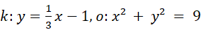 W tym zadaniu należy wyznaczyć, jakie są współrzędne punktów wspólnych prostej k i okręgu o (o ile istnieją), gdzie: