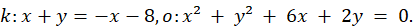 W tym zadaniu musisz wyznaczyć współrzędne punktów wspólnych (o ile istnieją) prostej k i okręgu o.