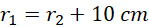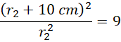 Dane są dwie kule, gdzie promień jednej z nich jest dłuższy o 10 cm od promienia drugiej. Dodatkowo pole powierzchni jednej jest 9 razy większe od pola drugiej. Wyznacz oba ich promienie.