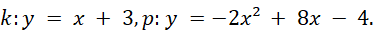 W tym zadaniu musisz wyznaczyć współrzędne punktów wspólnych prostej k i paraboli p (o ile istnieją), gdzie: