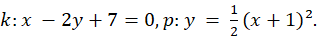 W tym zadaniu musisz wyznaczyć współrzędne punktów wspólnych (o ile istnieją) prostej k i paraboli p.