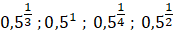 Z racji tego, że podstawa wyrażeń jest mniejsza od 1, to całe liczby będą rosły wraz z maleniem wyrażenia w wykładniku. Uporządkuj więc je w kolejności rosnącej.
