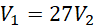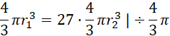 Dane są kule K1 oraz K2. Wyznacz stosunek ich promieni, jeśli objętość K2 jest 27 razy mniejsza od objętości K1.