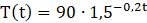 W laboratorium podgrzano pojemnik z płynem, a następnie pozwolono, by płyn wystygł. Temperatura płynu, oznaczana jako T (w stopniach Celsjusza), jest opisana za pomocą funkcji