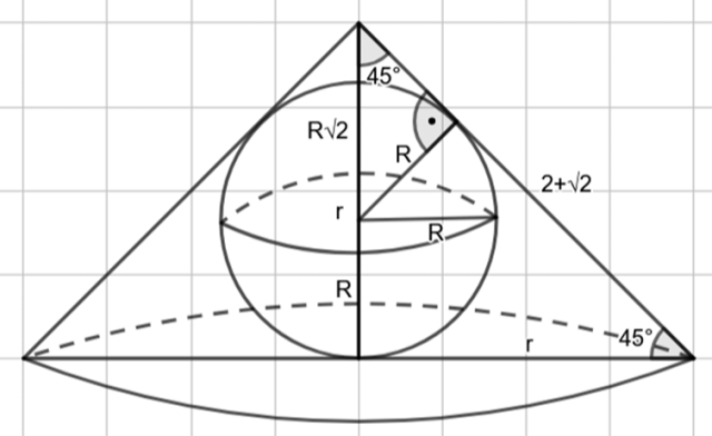 jest szczególny – jest połową kwadratu i ma przyprostokątne takiej samej długości, na tej podstawie wyznacz długość promienia stożka