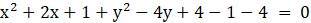 Równanie okręgu ma następującą postać, z której wyznacz wartość jego punktu środka S oraz promień: