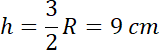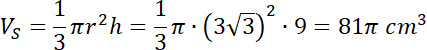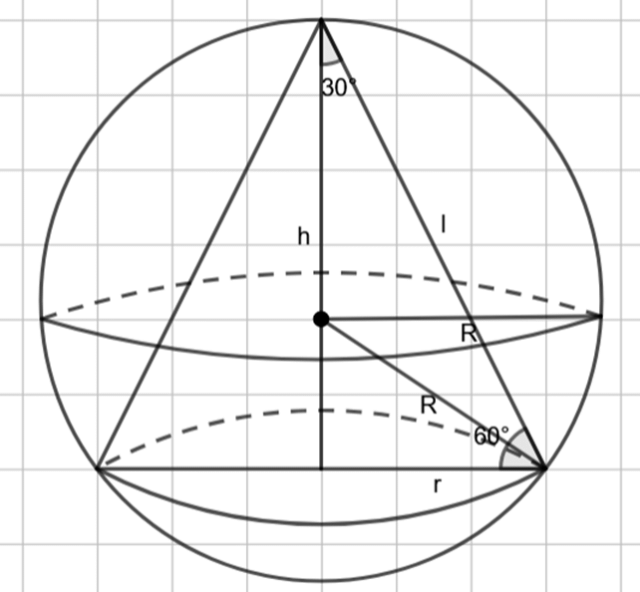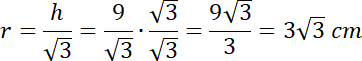 , podstaw znane wartości i z powstałego równania wyznacz długość promienia. Zauważ, że przekrojem powstałej bryły jest trójkąt równoramienny wpisany w koło, więc jego wysokość jest równa