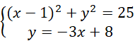 przecina okrąg, którego środek znajduje się w punkcie (1, 0) i promieniu długości 5 w punktach A i B.