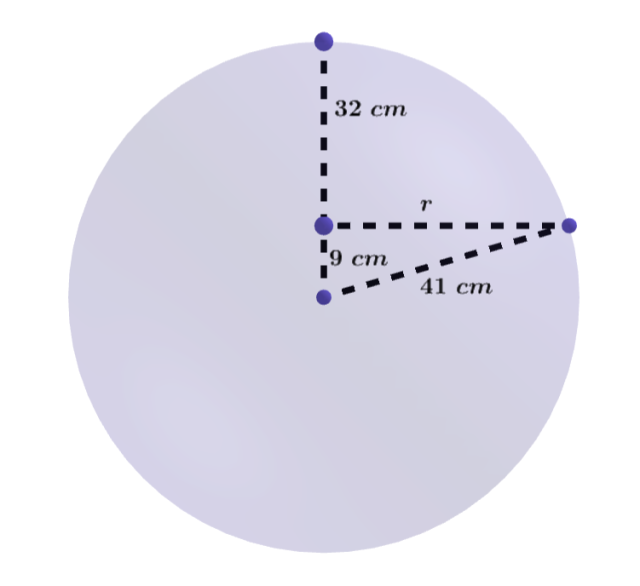 Dana jest kula o promieniu R = 41 cm. Płaszczyzna odległa od jej środka o 9 cm utworzyła pewien przekrój. Wyznacz jego pole.