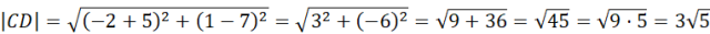 Skorzystaj z wyznaczonego w podpunkcie a) punktu D, a następnie oblicz długość odcinka CD, korzystając ze wzoru