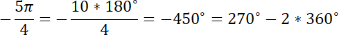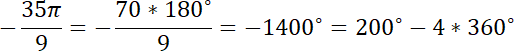 Musimy przekształcić miarę kąta z radianów na stopnie. W tym celu mnożymy podaną miarę przez