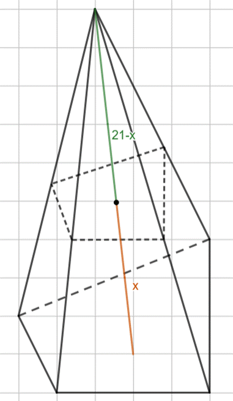 Zauważ, że skoro podstawy ostrosłupów są podobne, to całe figury również będą, w tym ich wysokości w wyznaczonej skali