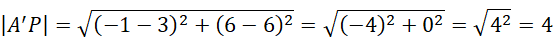 , wiedząc, że ta odległość wynosi 5. Z otrzymanego równania wyznacz pierwsze współrzędne punktu A – są dwie możliwości A i A’. Następnie zastosuj ten sam wzór, aby wyznaczyć odległości tych punktów od punktu P.