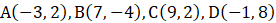Wektory przeciwległych boków są sobie równe, czyli czworokąt ABCD jest trapezem.