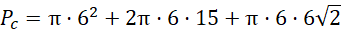 Oblicz długości krawędzi w trapezie prostokątnym, korzystając z charakterystycznych długości boków w trójkącie prostokątnym równoramiennym, a następnie rozłóż utworzoną bryłę na składowe walce oraz stożki. Skorzystaj z odpowiednich wzorów na pola powierzchni bocznej i objętości walca i stożka.
