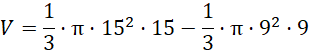Objętość bryły to różnica objętości: stożka ODC i stożka OAB: