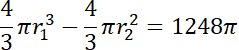 , zapisz różnicę objętości obu kul, wstaw znane wartości i z powstałego równania wyznacz wartość