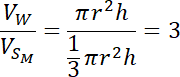 , a walec ma 3 razy większą objętość od objętości górnego stożka.