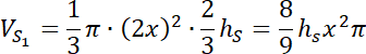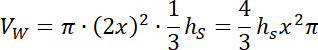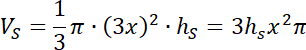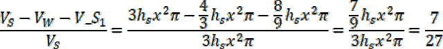 Na koniec oblicz stosunek objętości ścinek drewna (dużego stożka bez walca i mniejszego stożka) przez objętość wyjściowego stożka.