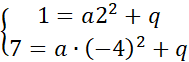 W tym zadaniu podaj równanie paraboli, która przechodzi przez punkty A = (2, 1) i B = (-4, 7), a jej wierzchołek leży na osi y.