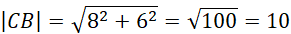 Spodek wysokości P dzieli odcinek AB na dwie równe części. Zatem długość odcinka PB wynosi 6. Oblicz długość odcinka CB: