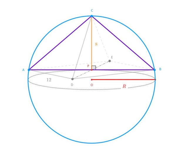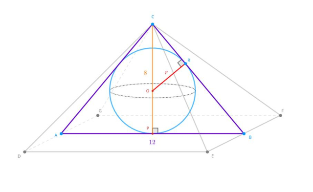 Zauważ, że trójkąty COR i CBP są podobne (kąt-kąt-kąt). Oblicz więc długość promienia wpisanej kuli: