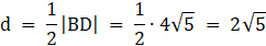 Ta odległość jest równa połowie przekątne |BD|.
