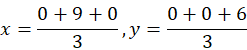W miejscu przecięcia się środkowych w trójkącie jest środek ciężkości trójkąta. Wzór na środek ciężkości trójkąta w punkcie