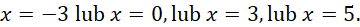 Funkcja f przyjmuje wartość 0 dla argumentów równych -3, 0 oraz 3.