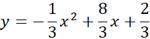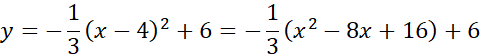 W tym zadaniu znajdź wartości współczynników a, b i c w równaniu funkcji kwadratowej y = ax2 + bx + c, której wierzchołek znajduje się w punkcie (4, 6) i przechodzi ona przez punkt (1, 3).