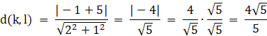Oblicz odległość między k i l. Skorzystaj ze wzoru na odległość między dwoma prostymi równoległymi: