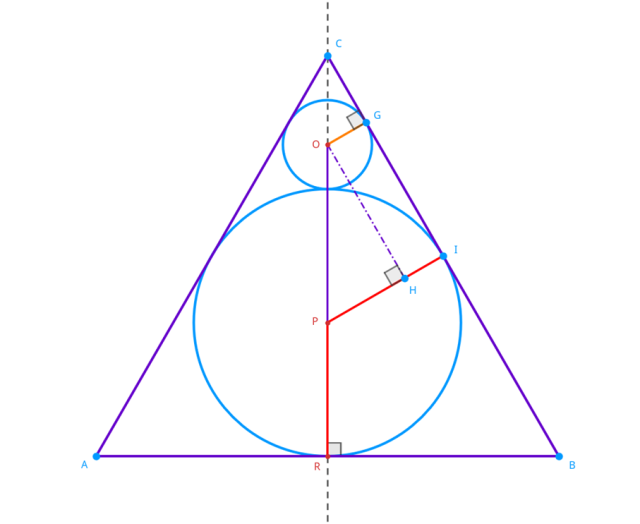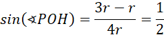 Zauważ, że trójkąty ACR i CRB są przystające. Trójkąty COG, CPI i OPH są podobne. Oblicz miarę kąta POH, korzystając z definicji funkcji trygonometrycznych:
