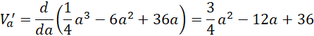 Pochodna zmienia znak z dodatniej na ujemną w punkcie 𝑎 = 4, czyli jest maksimum lokalnym.