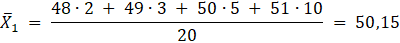 Sprawdzono, ile pinezek znajduje się w 30 losowo wybranych pudełkach spakowanych przez maszyny. Wyniki zebrano w tabelach. Dla której z maszyn średnia arytmetyczna wyniosła mniej niż 50?