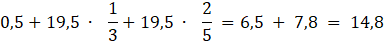 (20 - 14,8) : 4 = 5,2 : 4 = 1,3 franka