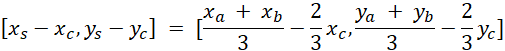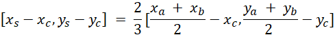 Współrzędne środka ciężkości należy skorzystać z działań na wektorach oraz z faktu, że dzieli on środkowe w stosunku 2:1.