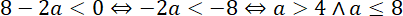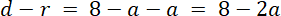 Dany jest okrąg o promieniu r i prosta, której odległość od środka okręgu jest równa d. W tym zadaniu musisz ustalić położenie prostej k i okręgu o w zależności od a, jeśli r = a, d = 8 - a