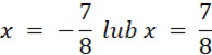 , ponieważ wyrażenie w mianowniku nie może być równe zero, gdyż nie możemy dzielić przez zero. Następnie wymnażamy równanie „na krzyż”. Przenosimy wartości bezwzględne na lewą stronę równania, a wartości liczbowe na prawą stronę. Uproszczamy wyrażenie po lewej stronie równania. Następnie dzielimy obustronnie równanie przez 16. Rozwiązujemy równanie, opuszczając wartość bezwzględną wyrażenia. Opuszczenie wartości bezwzględnej skutkuje rozbiciem równania na dwa przypadki. Należy pamiętać o zmianie znaku w drugim przypadku. Następnie rozwiązujemy je jak zwykłe równania.