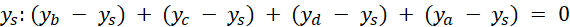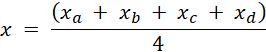 Otrzymujemy, że każda współrzędna środka ciężkości czworokąta to średnia arytmetyczna odpowiednich współrzędnych jego wierzchołków.