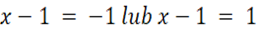ponieważ wyrażenie znajdujące się w mianowniku nie może być równe zero, gdyż przez zero nie możemy dzielić. Następnie zauważamy, że wyrażenie pod wartością bezwzględną po lewej stronie równania jest równe 1. Rozwiązujemy równanie, opuszczając wartość bezwzględną wyrażenia. Opuszczenie wartości bezwzględnej skutkuje rozbiciem równania na dwa przypadki. Należy pamiętać o zmianie znaku w drugim przypadku. Następnie rozwiązujemy je jak zwykłe równania. Otrzymujemy dwa rozwiązania, z czego jedno jest sprzeczne z początkowymi założeniami. Zatem równanie ma tylko jedno rozwiązanie
